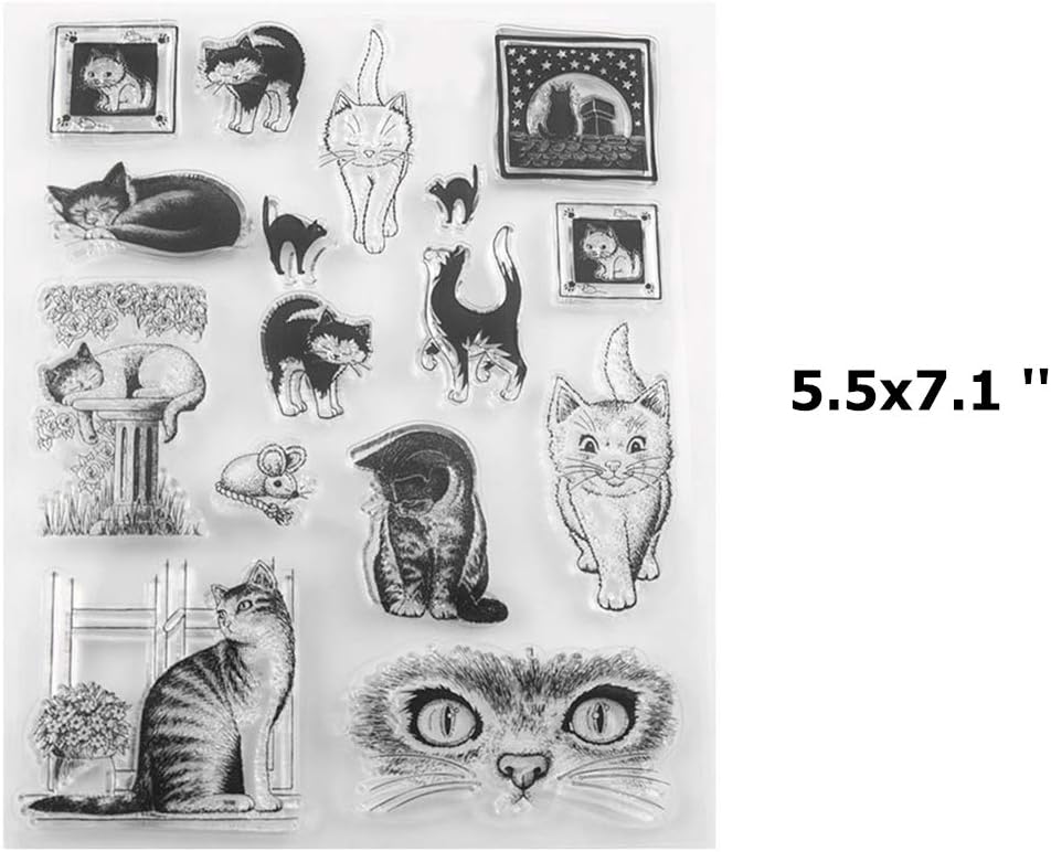 Cat family clear stamps for card making decoration diy scrapbooking, cute animals group transparent rubber seal stamps for photo card album crafting supplies.